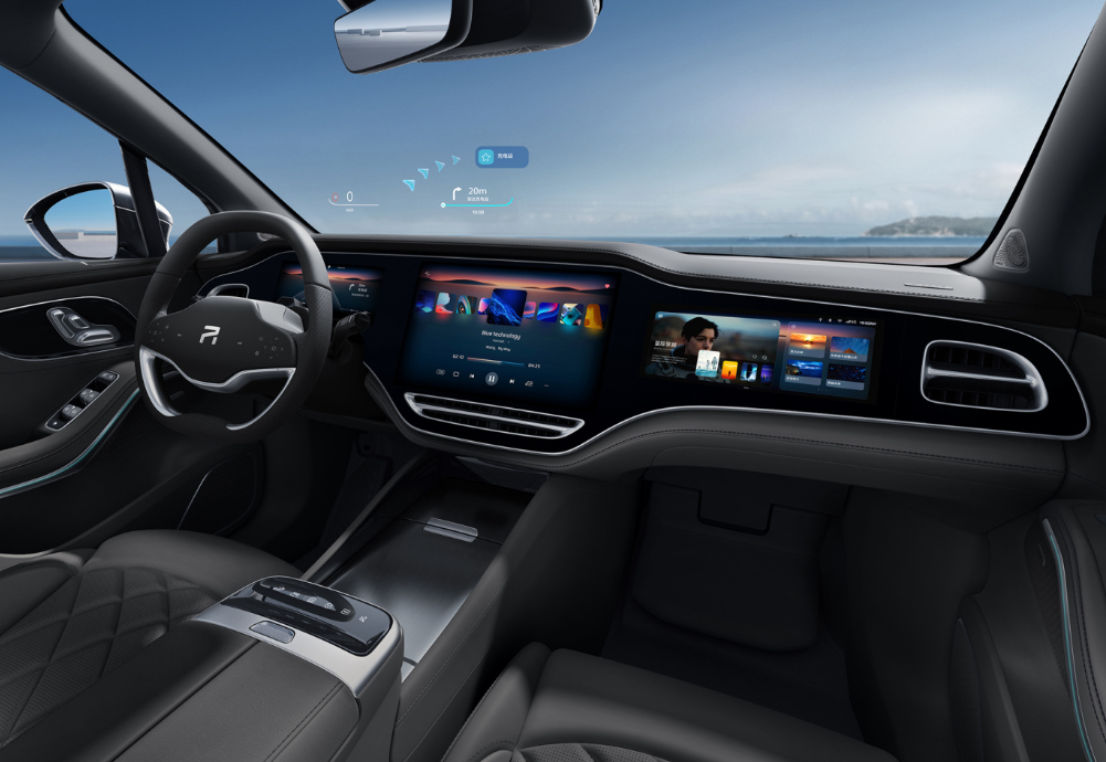 内饰层面,飞凡R7整体布局简约科技,三块硕大的液晶屏幕组合而成了43英寸宽幅真彩三联屏,内置了飞凡RISING OS全融合高阶智驾系统,同时搭配视觉增强AR-HUD平视系统,可实现四屏联动交互功能。值得一提的是,搭载RISINGPILOT全融合高阶智驾系统的飞凡R7拥有33个顶级高阶感知硬件、Premium4D成像雷达、800万像素高清摄像头、全球首发量产的LUMINAR 1550nm高规激光雷达。同时,Orin X超算力、高带宽的芯片的加持,具备功耗低、性能强的优势,单颗芯片算力达到254 TOPS。