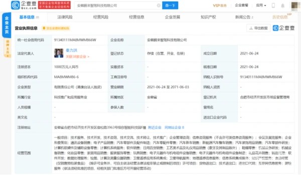 注册资本1000万元 安徽蔚来智驾科技公司正式成立