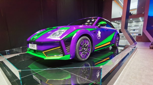 2022成都车展上,沙龙汽车带来了与日本动漫《新世纪福音战士》的联名款车型。新车命名为机甲龙EVA限定版,该车采用了源自EVA动漫中初号机的颜色涂装,整体辨识度极高。