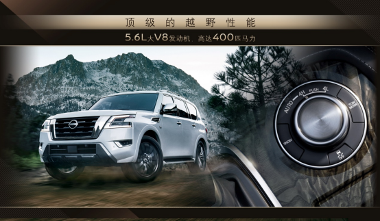 动力方面搭载了日产5.6L V8(VK56)缸内直喷发动机,最大功率294kW、400马力,最大扭矩为560N·m,达到量产级别自然吸气V8发动机的极致性能。V8发动机匹配非承载式车身以及饱受好评的底盘与四驱系统,北美版途乐在越野性能上一脉相承。