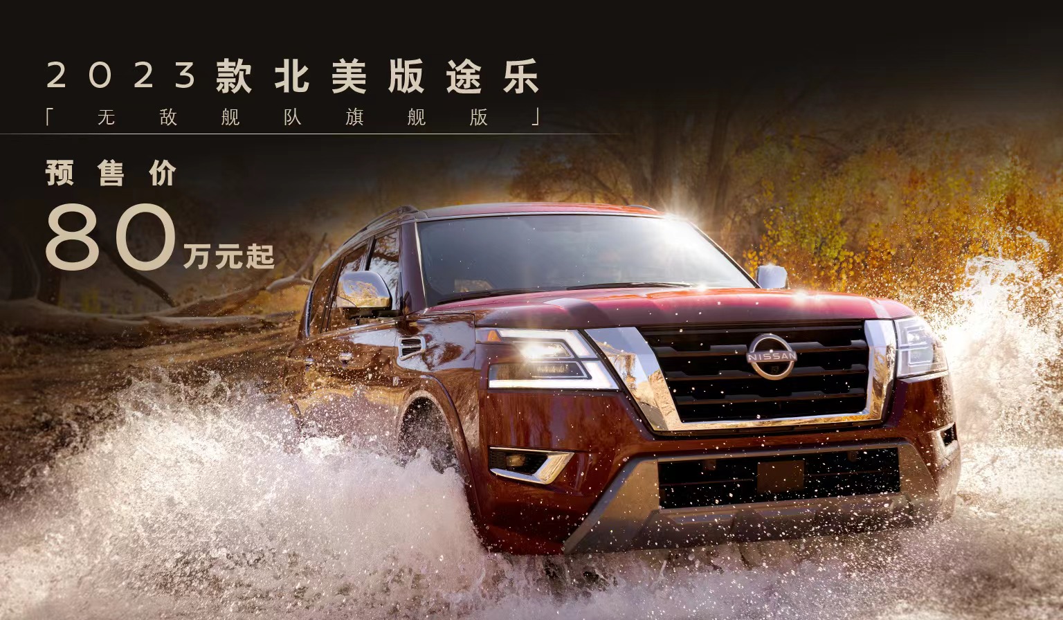 2023款北美版途乐无敌舰队旗舰版,作为日产全球旗舰SUV车型,不仅在卓越的越野性能方面一脉相承,而且霸气的外观升级、豪华舒适的超大座舱、全方位的智能安全配置,使得这款车既能够满足高端越野爱好者,不断拓展生活边界,应对任何挑战的需求,也更能适应与家人、朋友一起享受出游乐趣,亲近自然的需要,是一辆颜值与科技感拉满的新款5.6LV8途乐。